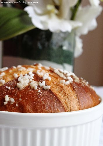 Non avevo mai sentito parlare di questo dolce….. vedi quante cose si imparano navigando in rete! Sbaglio o il sapore è un pò simile al panettone? La forma comunque lo è. Chissà che bontà!