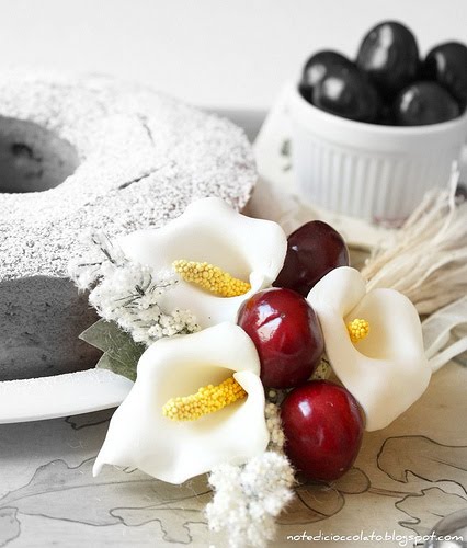 che buona la ciambella e che bello il mazzolino di fiori e frutti!