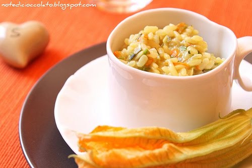 A cosa mi riferisco? Ad un leggero sottofondo di asparagi che si accompagna alla delicata nota dei fiori di zucca e dona a questo risotto una marcia in più.