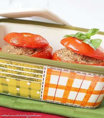 Al solito però, nella foga di sperimentare idee nuove, arrivo in ritardo (e dire che nella vita sono un tipo puntuale!) e mi accorgo di non aver ancora preparato i piatti che mi piacciono quando ormai la stagione dei protagonisti sta quasi per terminare. Lo avevo fatto con i fiori di zucca, recuperati agli sgoccioli, e mi son ripetuta con i pomodori ripieni. Dopo aver rimandato per tutta l’estate ecco che mi son decisa quasi allo scader del tempo, perchè d’accordo che i pomodori si trovan tutto l’anno, ma volete mettere il gusto dei prodotti di stagione?