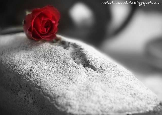Bella la foto in bianco e nero con quel piccolo tocco di rosso! Davvero molto suggestiva. E che dire del tuo plumcake puntinato? Voglio assaggiarloooooooo!!! :((