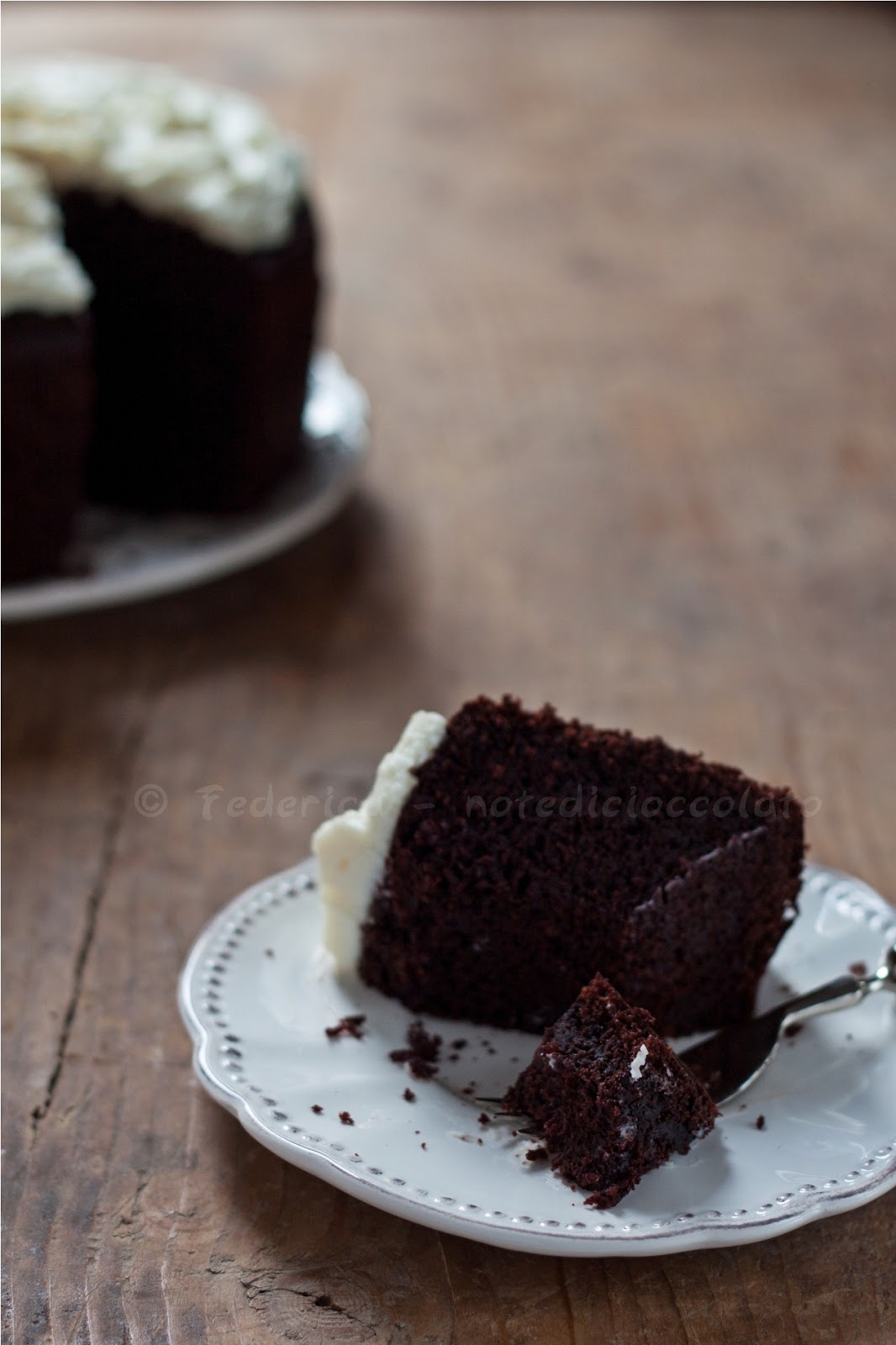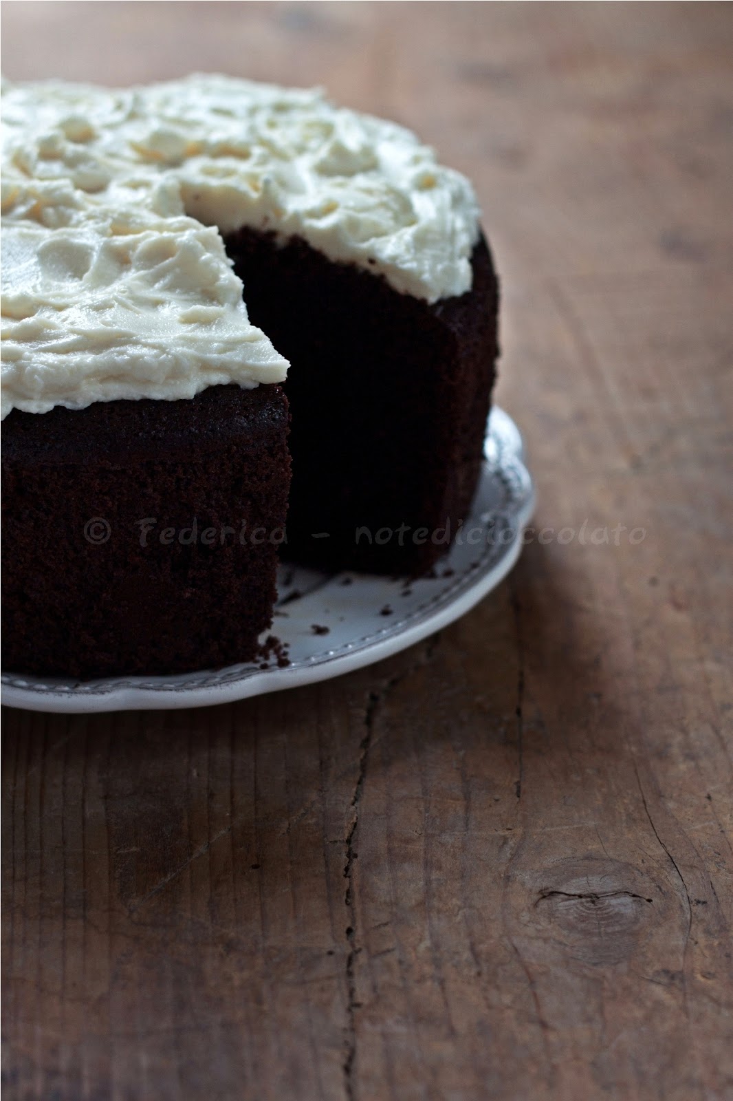 Auguri pulcinetta del web! anche se non ci va sempre di festeggiare già pensare una torta così e farla è una piccola festa di per sè. Questa l'ho fatta ma il frosting è perfetto, te lo copio-subito-subito. E' una torta americana che da una soddisfazione immensa, sembra una magia mentre la fai , vero? Allora Cin-cin baciotti, mony